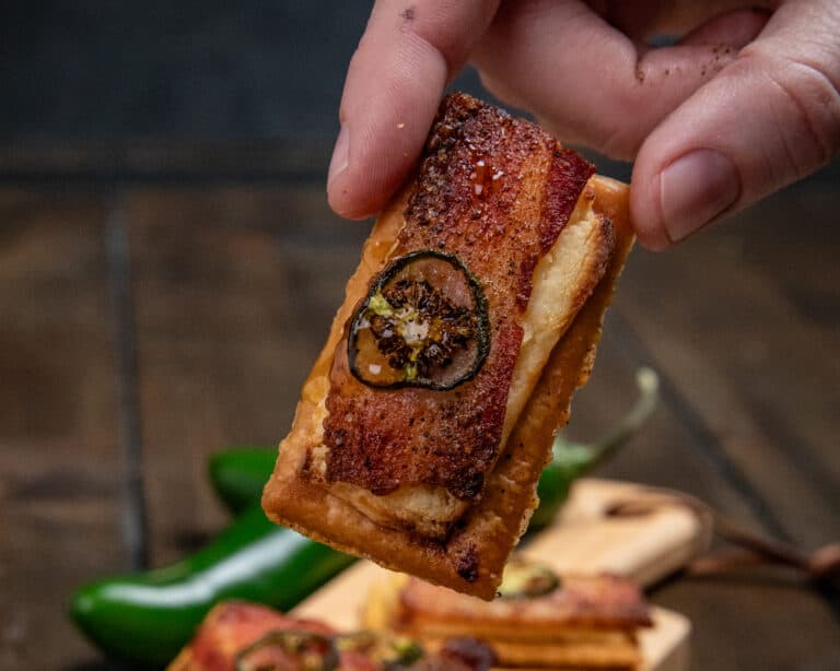Not too long ago I shared my candied bacon crackers recipe on social media and they went viral! I had so many positive comments and also some suggestions. One of the biggest was to add cream cheese before the bacon and jalapeños for that sweet and spicy bite. With this recipe I made it happen and I'm so glad I did. This version might be better than the original!